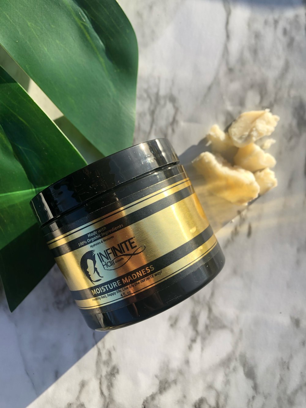Use on wet or dry hair. For easier application, lightly spritz your hair and apply a small amount of product into palms and softly lather to melt before applying. Apply Moisture Madness on sectioned hair by rubbing hands down the hair shaft from root to ends. Focus on ends for increased moisture retention. Do not rinse. Style hair as desired.